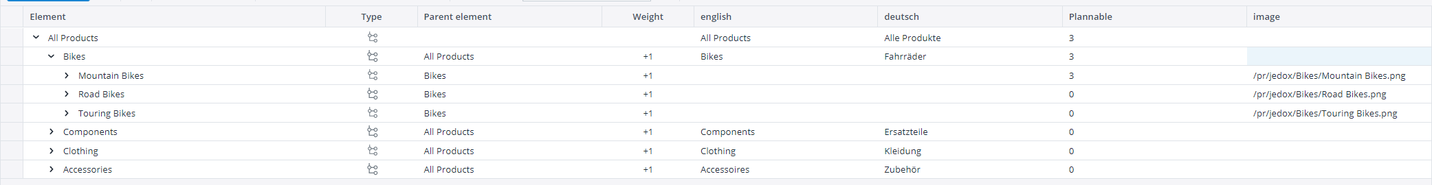 For our example, we will use Biker’s best database whereas for dimension Product we will add attribute images. Value of attribute is the location of the image behind [ Example /pr/jedox/images/Bikes/Mountain Bikes.png ]